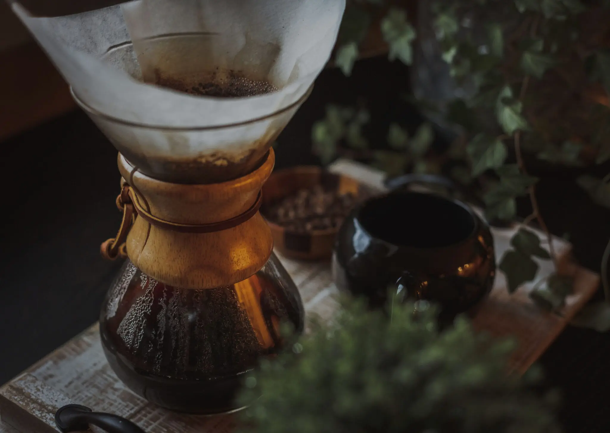 - Préparer ses ustensiles : cafetière Chemex, 16g de café pour 230 ml, 230 ml d’eau à 93°C et un filtre Chemex pré-plié.