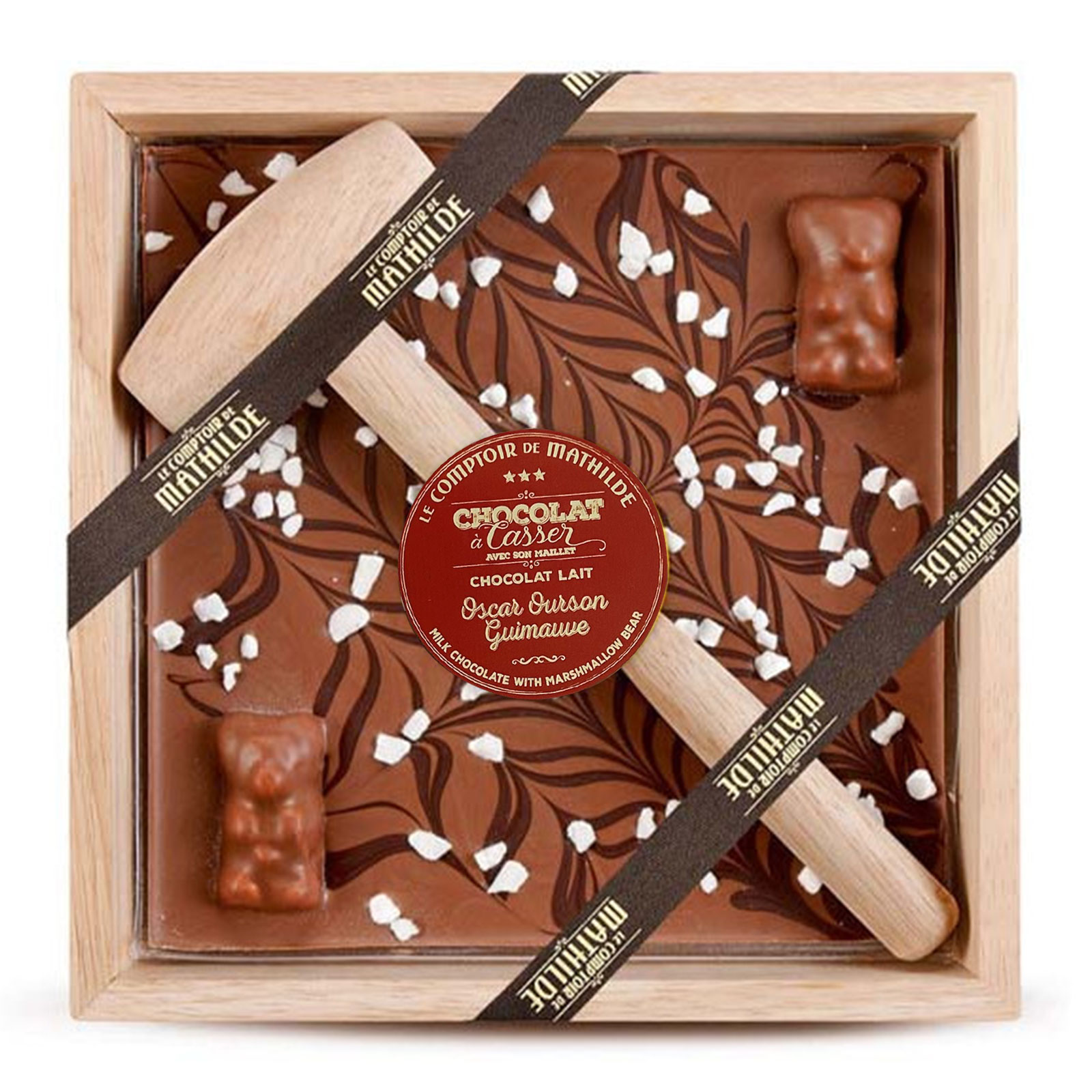 Plongez dans un univers de plaisir interactif avec cette tablette de chocolat à casser, une création qui invite à la participation. Chaque coffret est soigneusement composé pour éveiller la curiosité et l’envie : il renferme une généreuse tablette de 350g et l’indispensable maillet en bois, spécialement conçu pour libérer les saveurs cachées. C’est une véritable invitation à transformer la dégustation en un moment de jeu et de découverte, rendant l’expérience encore plus mémorable et personnelle.