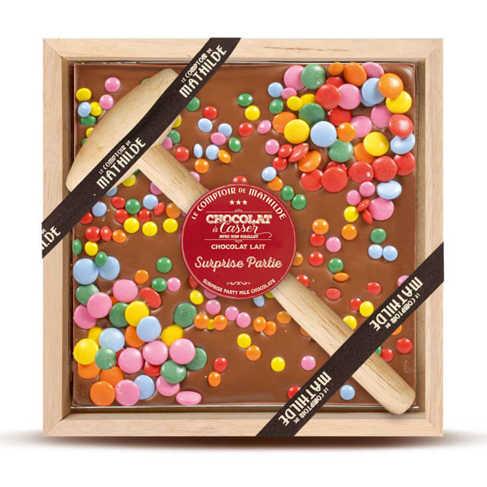 Découvrez la tablette à casser Surprise Partie du Comptoir de Mathilde. Elle promet un moment de pur divertissement. Cette création est conçue pour être brisée. Elle transforme la dégustation en un véritable jeu.