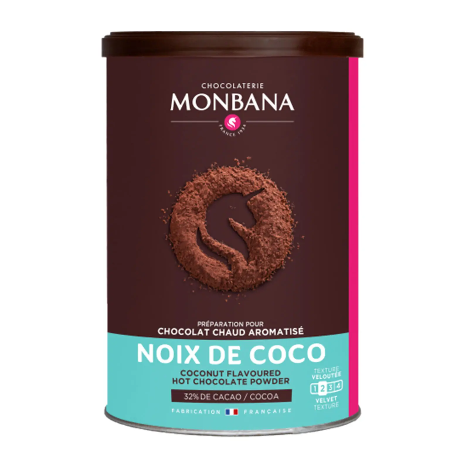 Ingrédients :Sucre, cacao en poudre (32% minimum), arôme naturel de noix de coco (lait). Traces éventuelles de céréales contenant du gluten, œufs, soja, fruit à coque, céleri et sulfites.