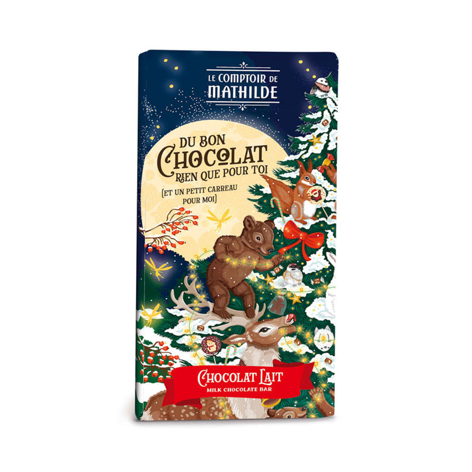 Avec ses 100 grammes de chocolat de qualité, cette tablette est idéale pour les petits plaisirs du quotidien ou les moments de partage pendant les fêtes. Offrez-la à vos invités en fin de repas ou glissez-la dans une chaussette de Noël pour une surprise gourmande. Cette création signée Le Comptoir de Mathilde saura réchauffer les cœurs en cette période hivernale.