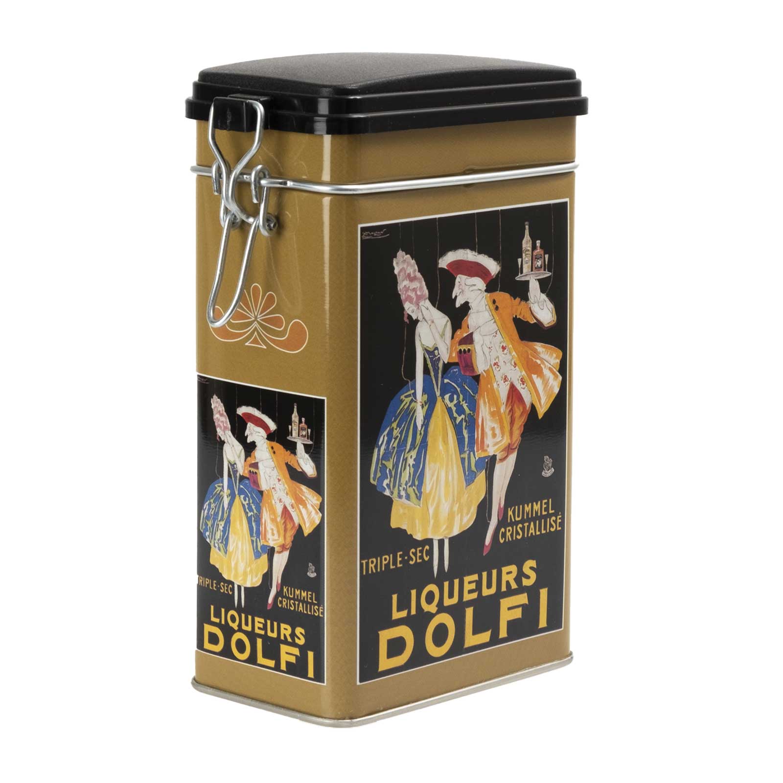 Quatre illustrations historiques ornent ces boîtes Europa. Chacune raconte une histoire : Liqueurs Dolfi avec ses serveurs élégants, Gio Buton & Co Bologna et sa dame en cave à vins, Ville de Bruxelles célébrant une foire commerciale, L’Illustrazione Italiana avec ses scènes d’époque.