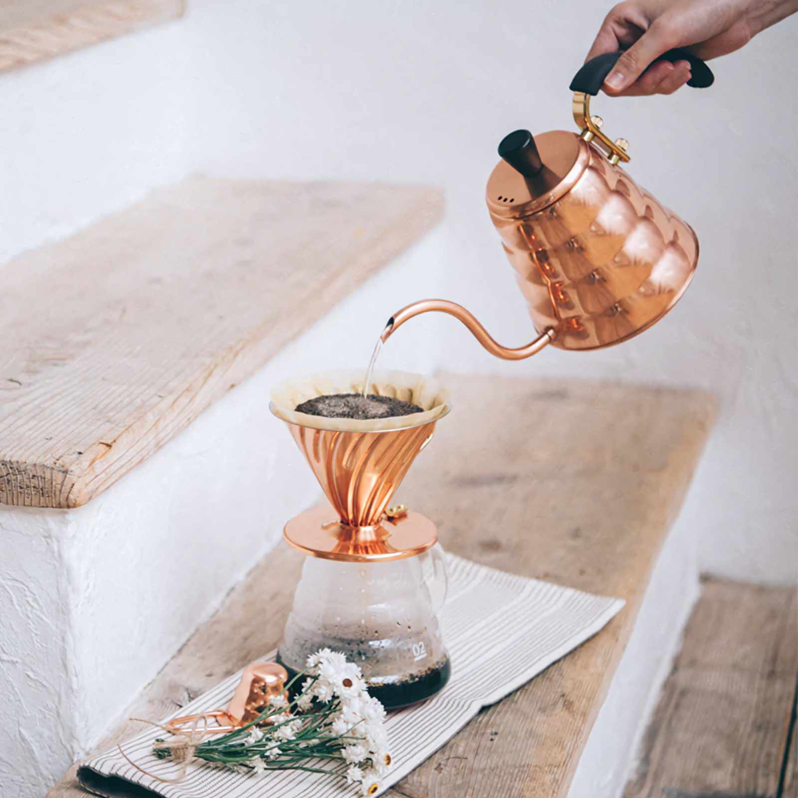 La chaleur conservée par le cuivre prolonge le contact de l’eau avec le café moulu. Résultat : saveurs plus complètes et arômes mieux développés. C’est un avantage décisif pour les amateurs de café filtre exigeants.