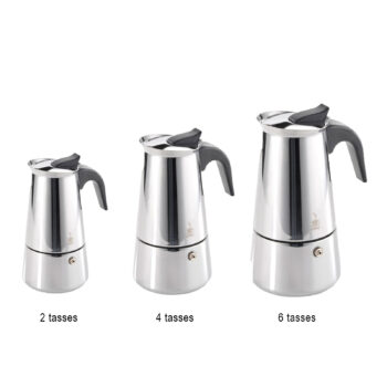 L’intégration de la compatibilité avec l’induction est un atout majeur, permettant à cette cafetière de se démarquer et de répondre aux exigences des cuisines contemporaines. Fini les soucis de compatibilité ; il suffit de la placer sur votre source de chaleur, et en quelques instants, l’arôme envoûtant de l’expresso commencera à embaumer votre espace, promettant un moment de pur délice et de détente à tout moment de la journée.