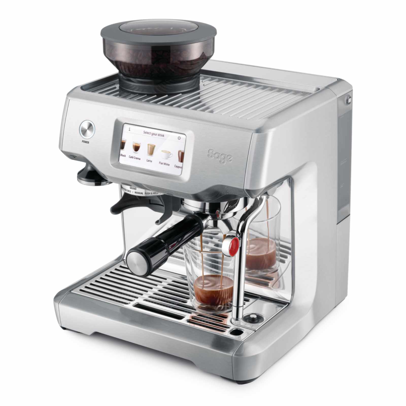 La Sage Barista Touch™ Impress reproduit fidèlement les standards des machines professionnelles. Elle maîtrise les 4 éléments essentiels : dosage précis de 18 à 22 grammes, extraction à 9 bars, eau chauffée à 93°C et vapeur à 130°C. Une simple touche suffit pour obtenir ces paramètres optimaux.