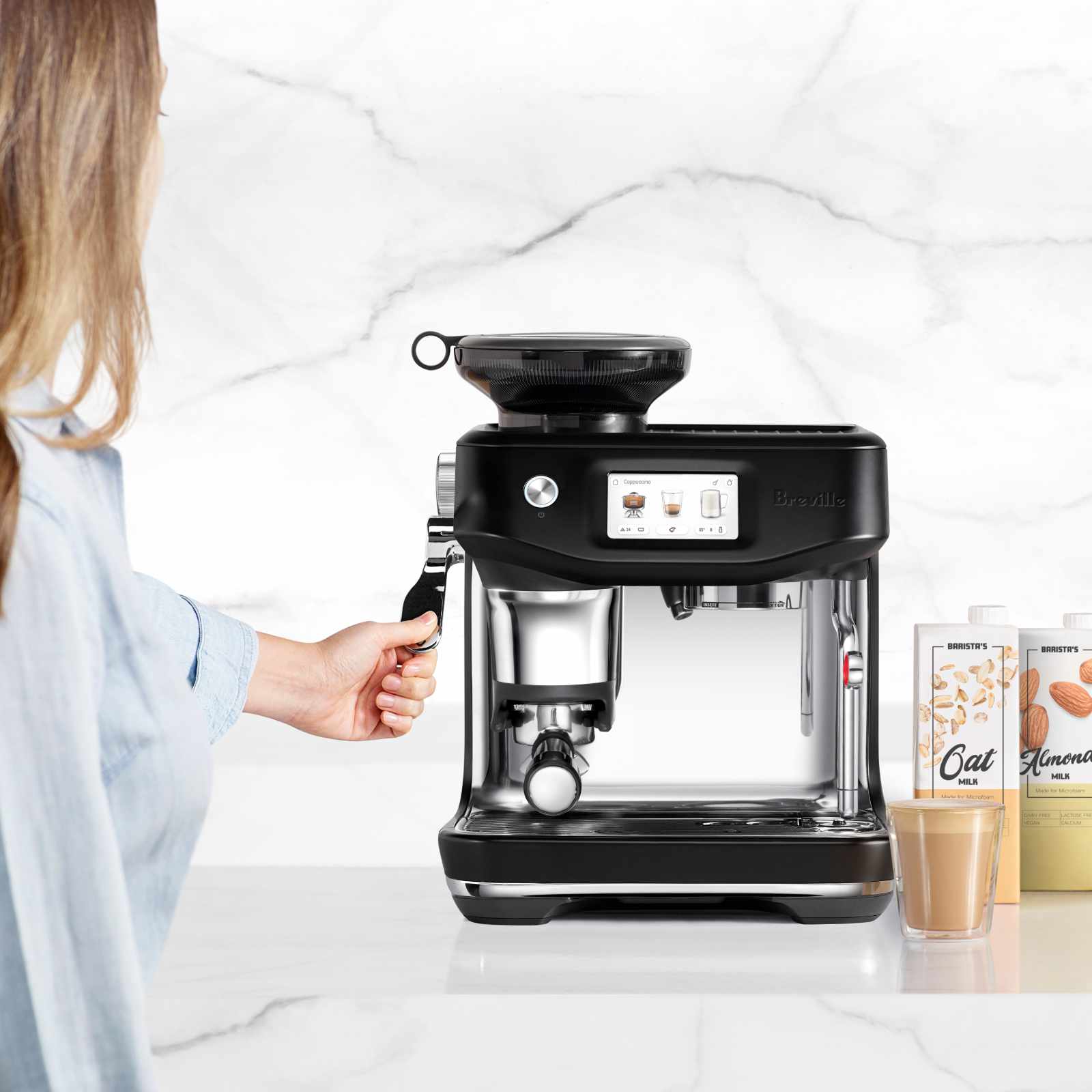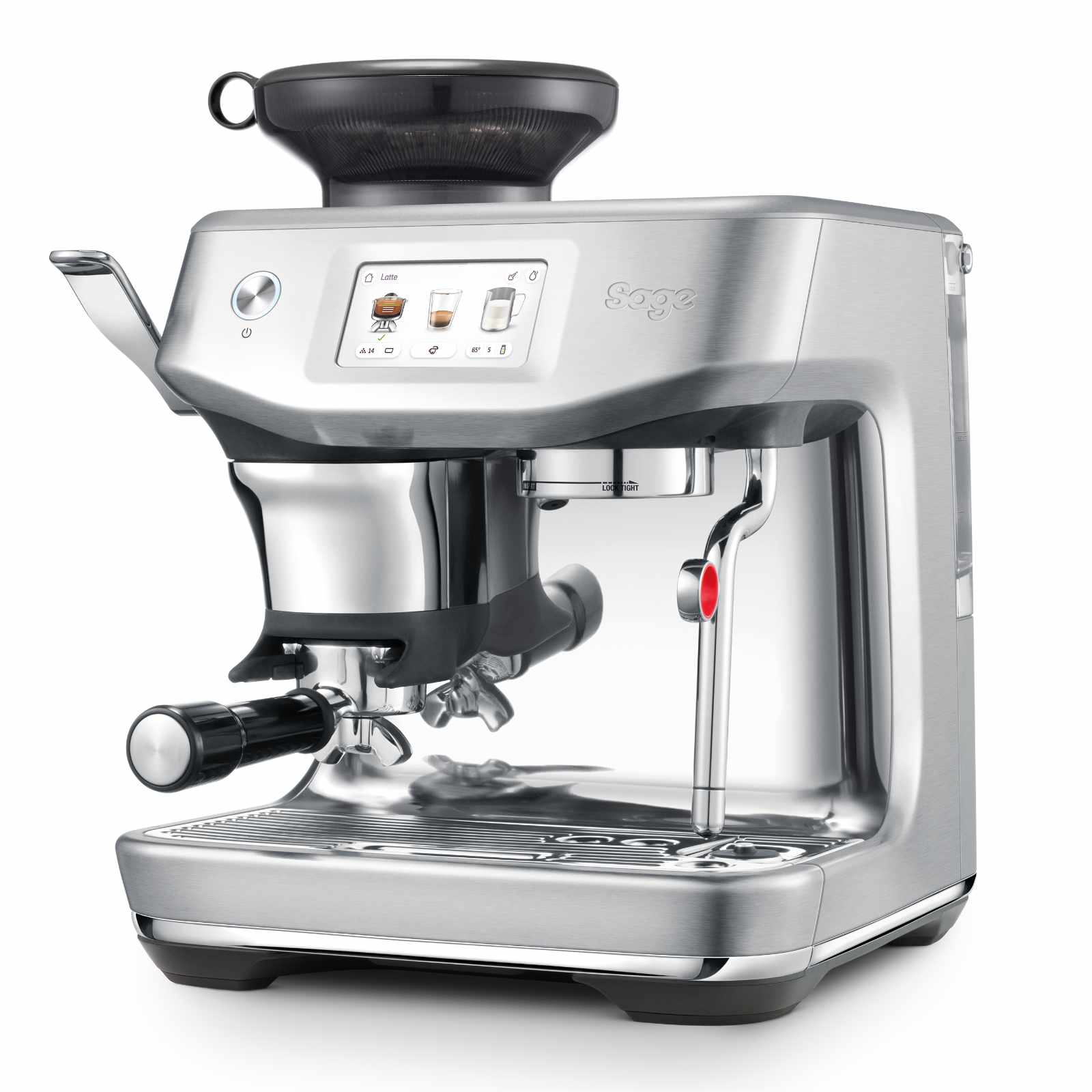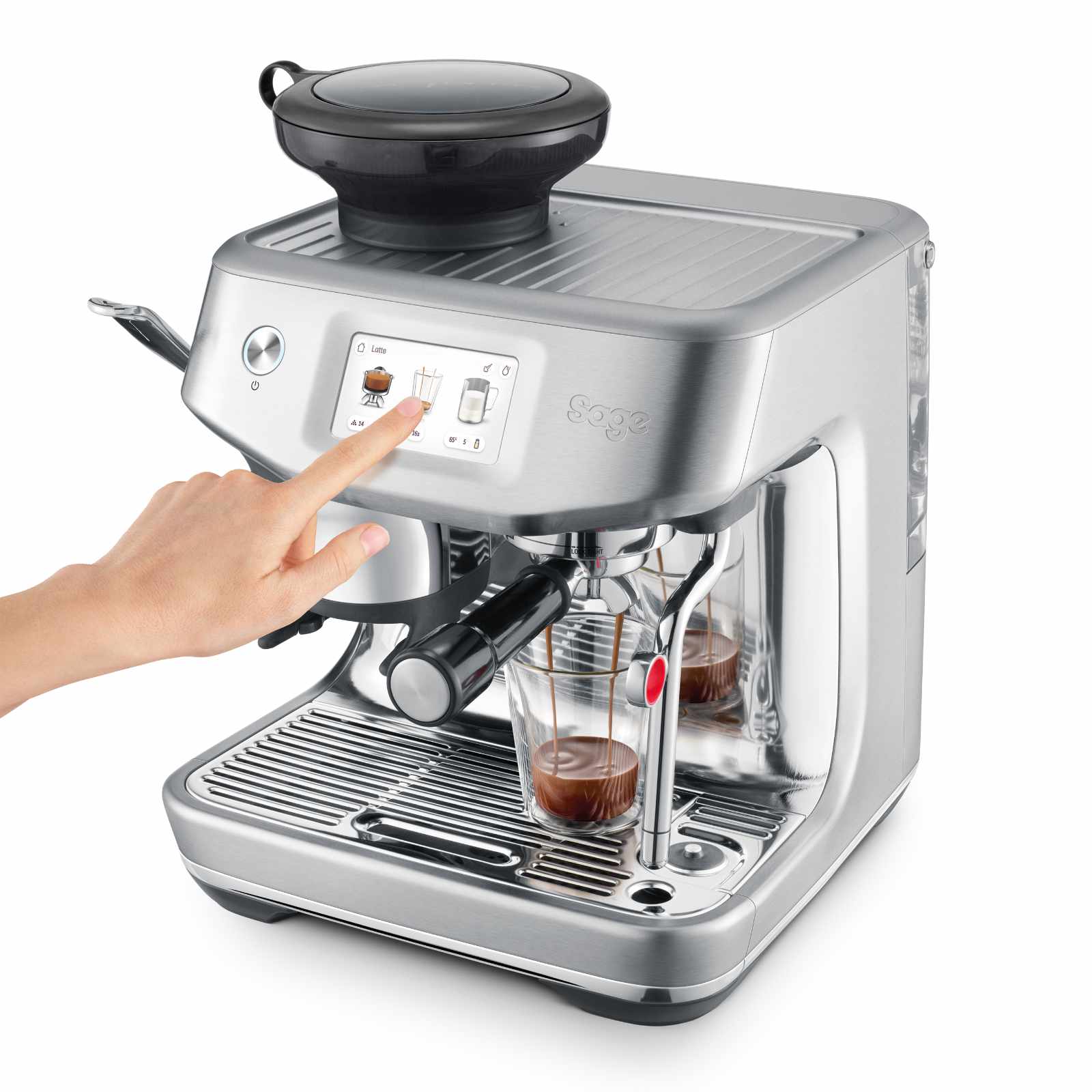 La Sage Barista Touch™ Impress reproduit fidèlement les standards des machines professionnelles. Elle maîtrise les 4 éléments essentiels : dosage précis de 18 à 22 grammes, extraction à 9 bars, eau chauffée à 93°C et vapeur à 130°C. Une simple touche suffit pour obtenir ces paramètres optimaux.