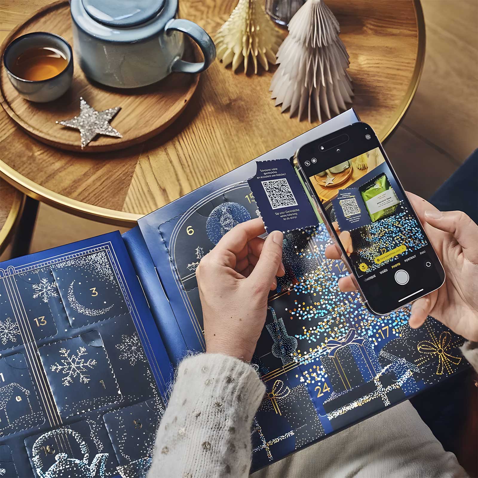 Au-delà de la simple dégustation, ce calendrier de l’Avent enrichit votre expérience du thé d’une dimension culturelle et immersive tout à fait unique. Pour la première fois, 11 des cases de ce calendrier recèlent un secret supplémentaire : un récit audio exclusif. Il suffit de scanner le QR code dissimulé derrière ces cases pour vous laisser transporter par des mythes et légendes fascinants autour du thé.