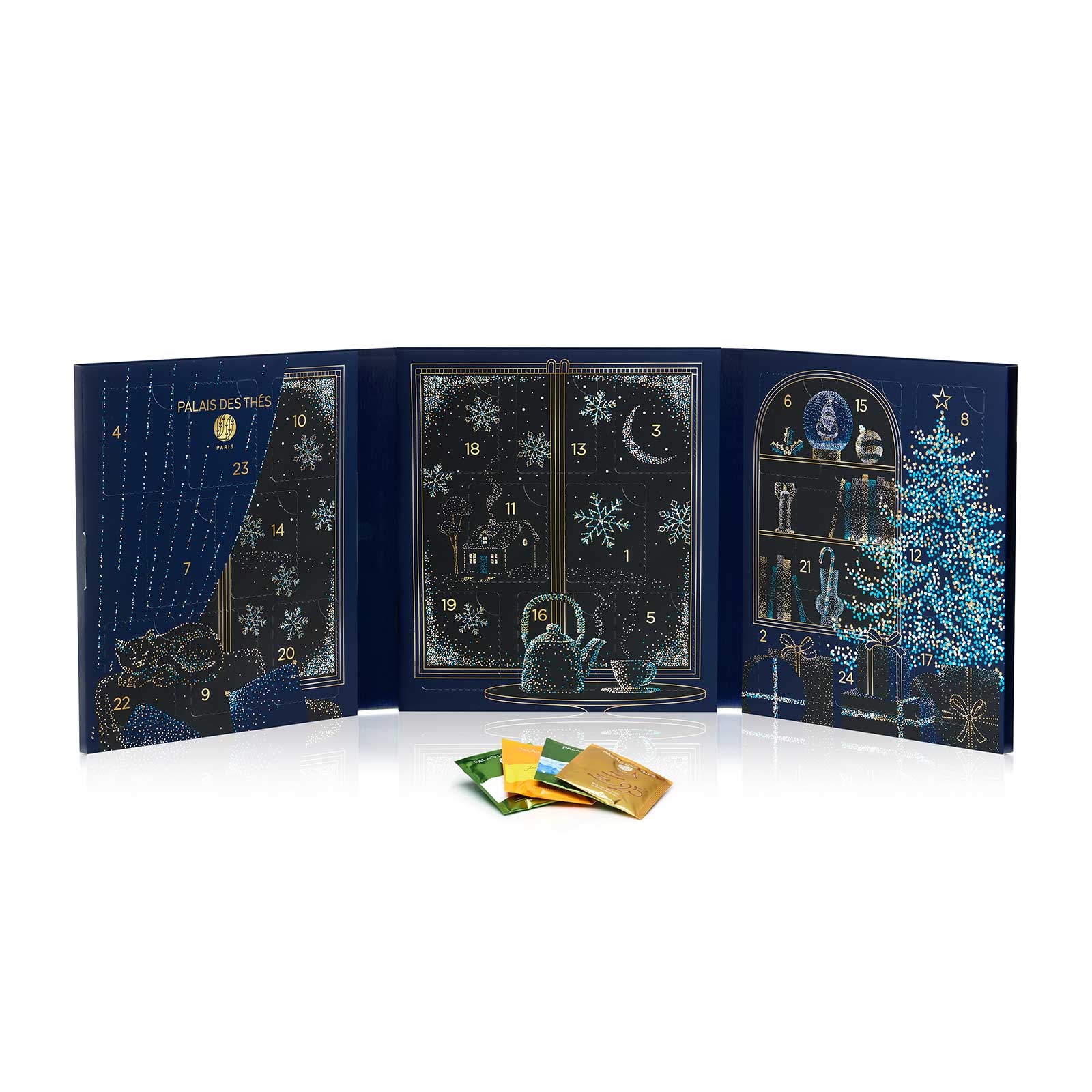 Plongez dans l’attente enchantée des fêtes de fin d’année avec un rituel quotidien de dégustation grâce à ce calendrier élégant. Chaque jour de décembre, jusqu’à Noël, vous aurez le plaisir de découvrir une nouvelle mousseline de coton, renfermant une sélection raffinée de thés et infusions. Ce coffret, paré d’un bleu nuit profond et orné de flocons de neige scintillants, évoque immédiatement la magie de l’hiver, invitant à la sérénité et à la gourmandise.