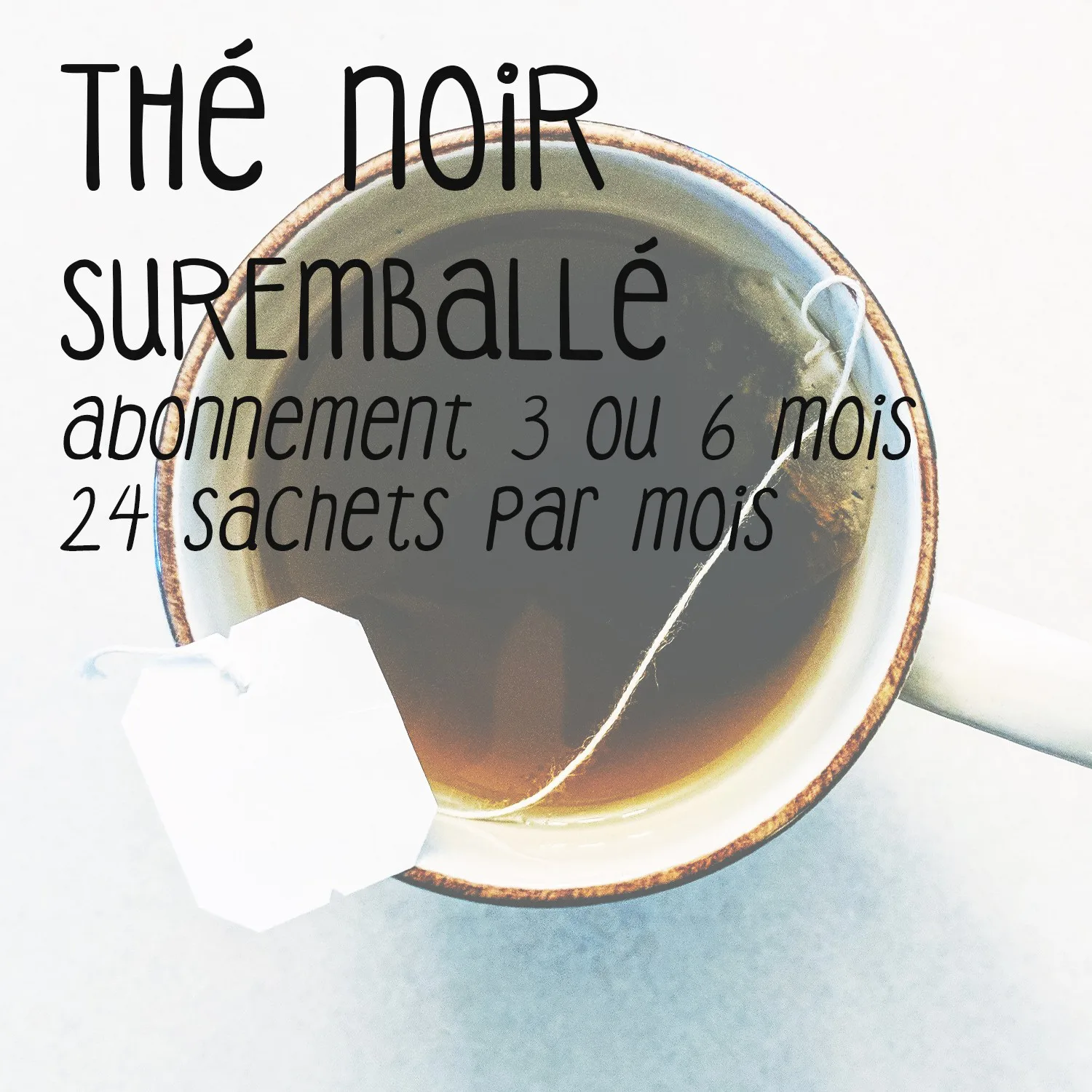Avec le pack “Thé noir suremballé”, vous recevrez chaque début de mois 24 sachets suremballés de thé noir.