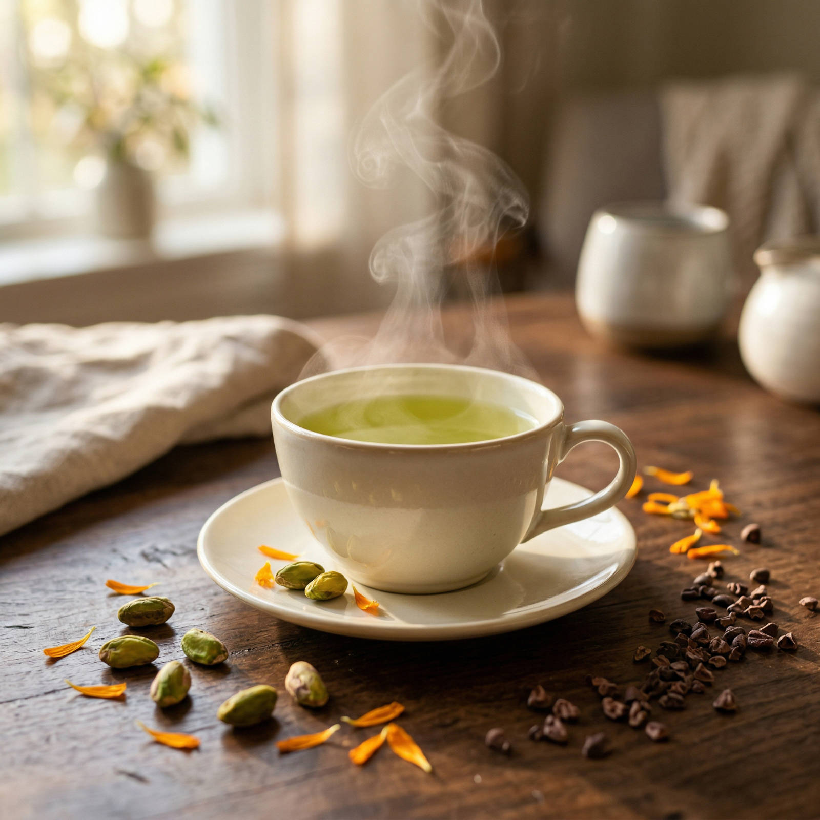 Pour vous, cela signifie que vous ne découvrez pas une recette hasardeuse, mais une formule pensée et testée. Le résultat est une tasse ronde et douce, où les saveurs dialoguent plutôt que de se battre. C’est particulièrement utile si vous aimez les thés verts mais trouvez souvent les mélanges trop sucrés ou trop lourds.