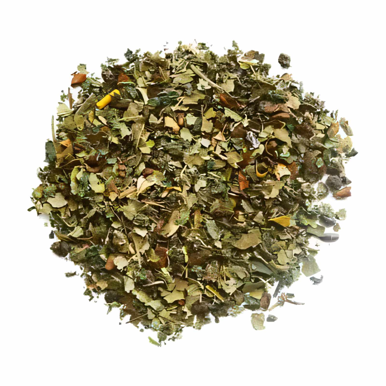 Mélange de thé vert, maté, feuilles d’orties, pulpe de pomme, feuilles de mûrier.