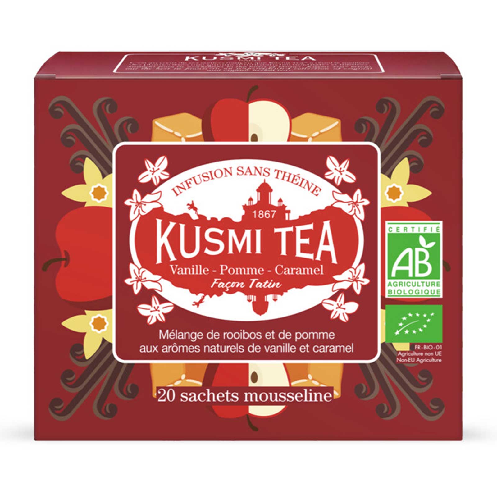 Kusmi Tea est une maison russe fondée en 1867, devenue une référence internationale en thés et tisanes premium. La marque est reconnue pour son approche : créer des mélanges qui jouent sur la gourmandise honnête, sans artifice. Chaque création est certifiée AB (Agriculture Biologique), ce qui garantit que les ingrédients proviennent de cultures sans pesticides synthétiques ni engrais chimiques.
