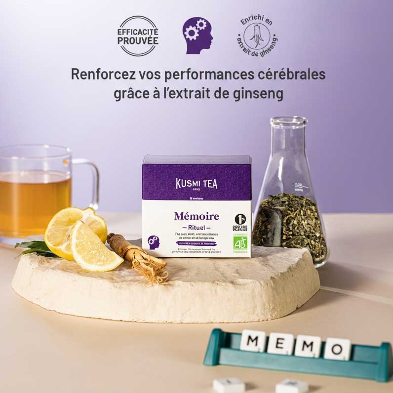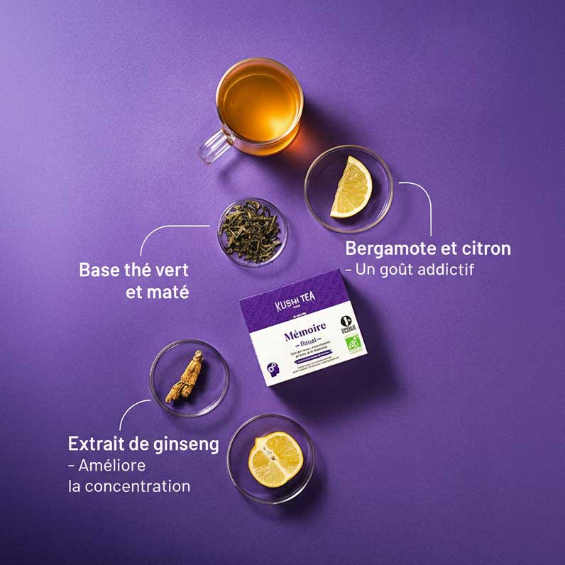 Face aux défis du quotidien, qu’il s’agisse de périodes d’examens, d’une charge de travail importante ou simplement du désir de maintenir une acuité intellectuelle optimale, il est essentiel de fournir à votre cerveau le soutien dont il a besoin. Ce rituel unique a été spécialement formulé pour agir comme un véritable partenaire de vos fonctions cognitives. Il associe la légèreté du thé vert, les vertus stimulantes du maté et la puissance reconnue du ginseng pour offrir un coup de pouce ciblé à votre capacité de concentration et de mémorisation.
