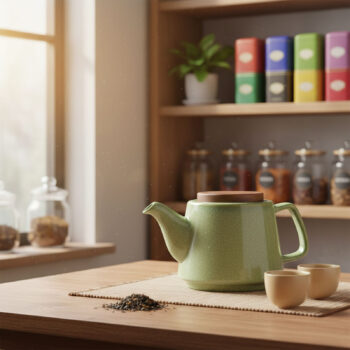 Plongez dans un univers de sérénité et d’authenticité avec cette théière Kaito, dont le design s’inspire directement de la beauté brute de la nature. Son corps en grès robuste est sublimé par une finition émaillée d’un vert profond, moucheté, qui évoque la fraîcheur des forêts et la quiétude des paysages verdoyants. Cet émail réactif confère à chaque pièce un caractère unique, avec des nuances et des textures subtiles qui captent le regard et ajoutent une touche d’artisanat véritable à votre table.