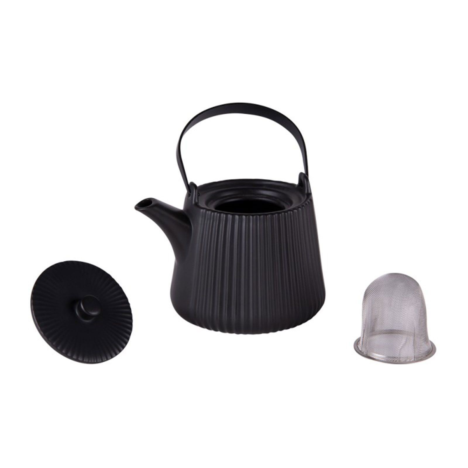La théière Tiao est façonnée en grès de haute qualité, une matière reconnue pour ses propriétés exceptionnelles. Le grès est apprécié pour sa robustesse et, surtout, pour son excellente capacité à conserver la chaleur. Cela signifie que votre thé restera à une température idéale plus longtemps, vous permettant de savourer chaque gorgée sans précipitation. Son design moderne et élégant, d’un noir profond, est sublimé par un corps texturé de fines rainures verticales qui captent subtilement la lumière, ajoutant une touche de sophistication à votre table.