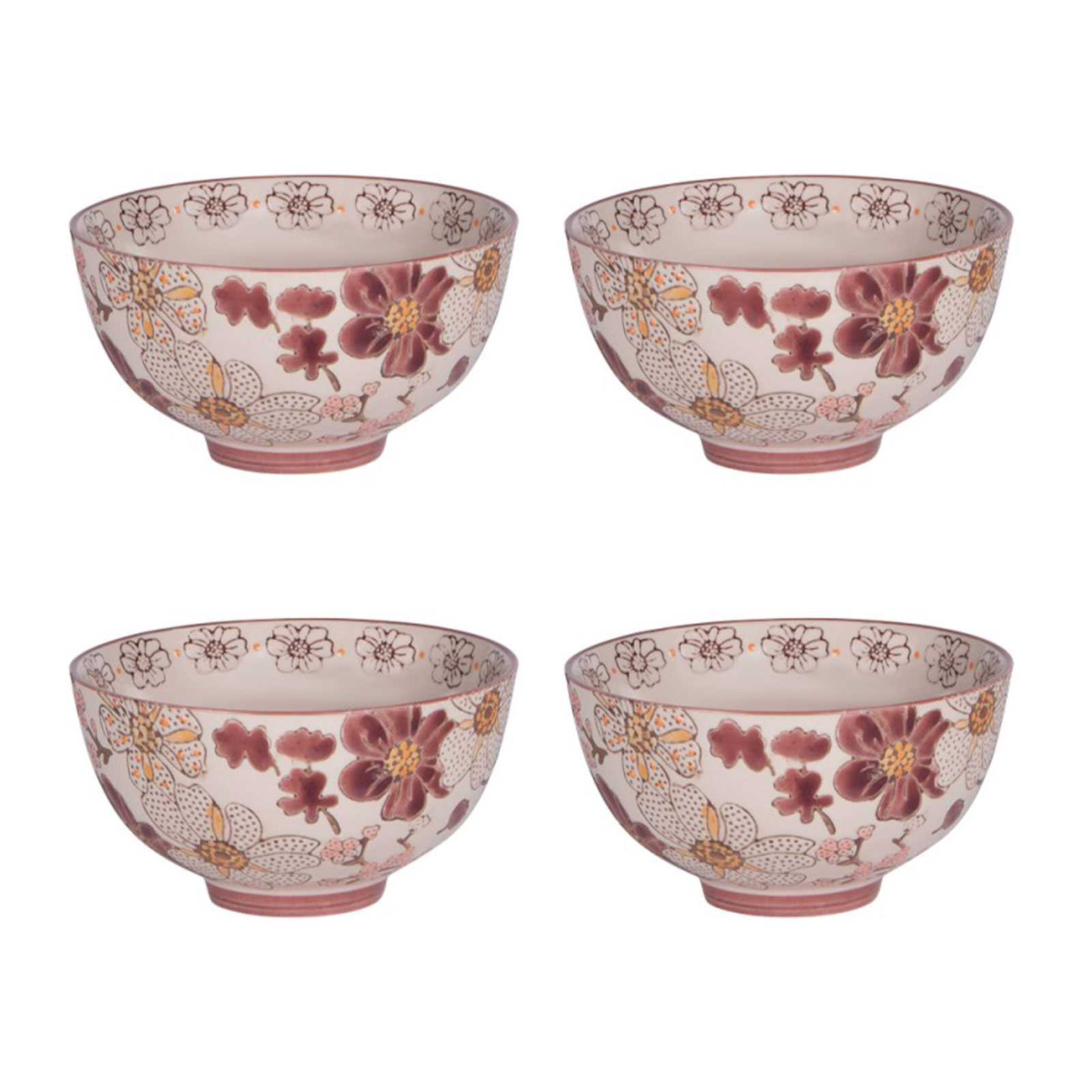 Cette composition florale unique apporte une touche de raffinement et de sérénité à votre table, évoquant la beauté changeante de la nature au fil des saisons. Le bord supérieur de chaque pièce est délicatement souligné par une frise de petits motifs floraux discrets, tandis qu’une fine bande de couleur bordeaux rehausse la base, ajoutant une profondeur visuelle à l’ensemble. Fabriquées en grès de qualité supérieure, ces coupelles ne sont pas seulement fonctionnelles ; elles sont des éléments décoratifs qui infusent une ambiance douce et printanière à chaque repas.