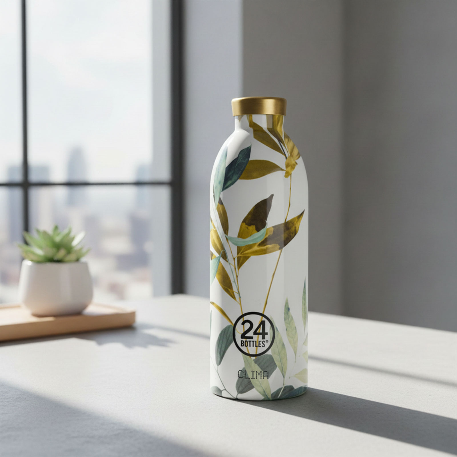Au-delà de ses performances thermiques, cette bouteille se distingue par son esthétique raffinée. Elle arbore un motif végétal délicat inspiré du Tivoli, avec des feuilles aux teintes dorées, bleutées et vertes qui se déploient harmonieusement sur un fond blanc pur. Le bouchon doré brillant apporte une touche de sophistication et de contraste élégant, faisant de cette gourde un véritable accessoire de mode qui complète votre style avec une fraîcheur naturelle.