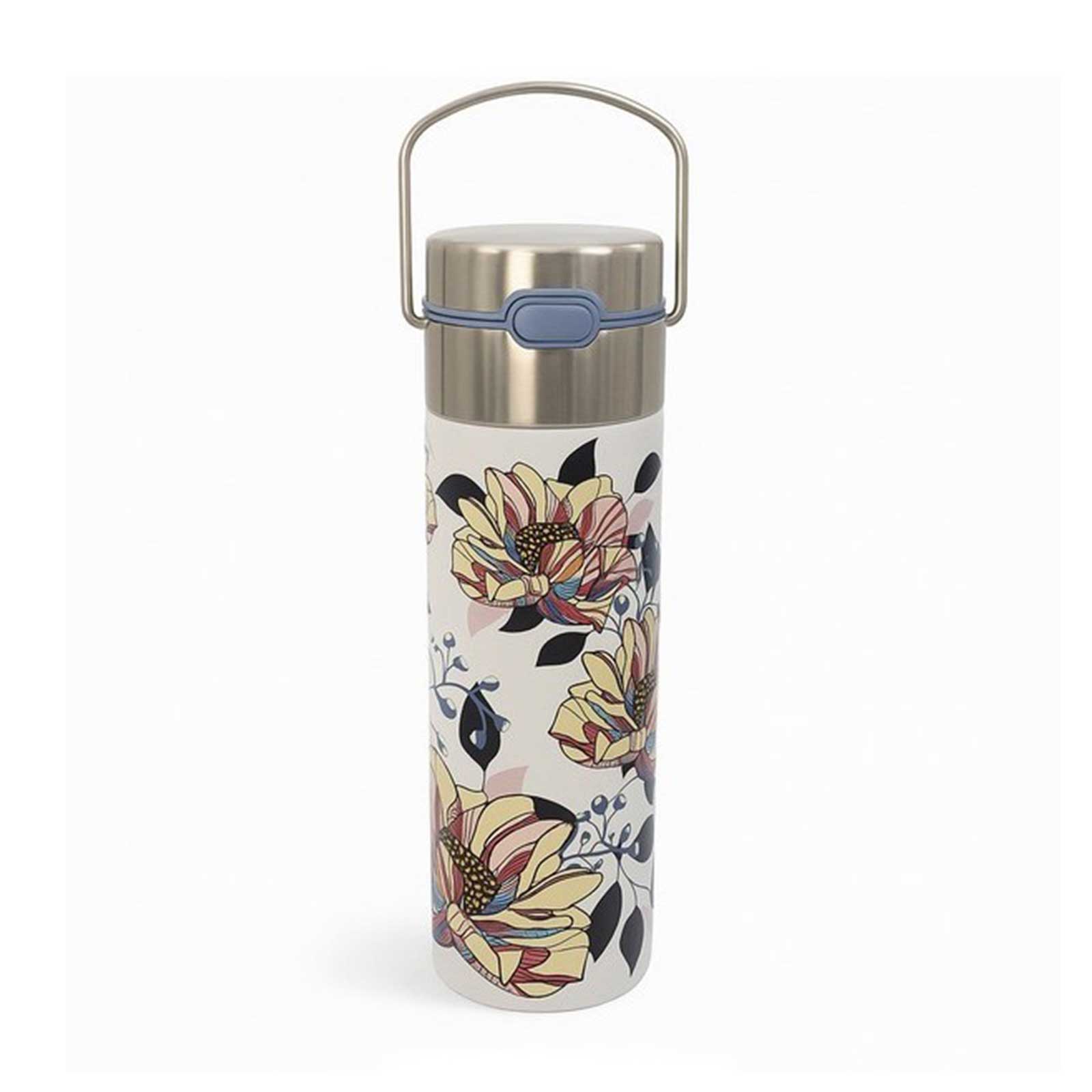 Lavez toutes les pièces à l’eau savonneuse après chaque utilisation. Rincez abondamment et laissez sécher le contenant ouvert, tête en bas. Le lavage à la main préserve le décor floral graphique et l’intégrité de la double paroi.